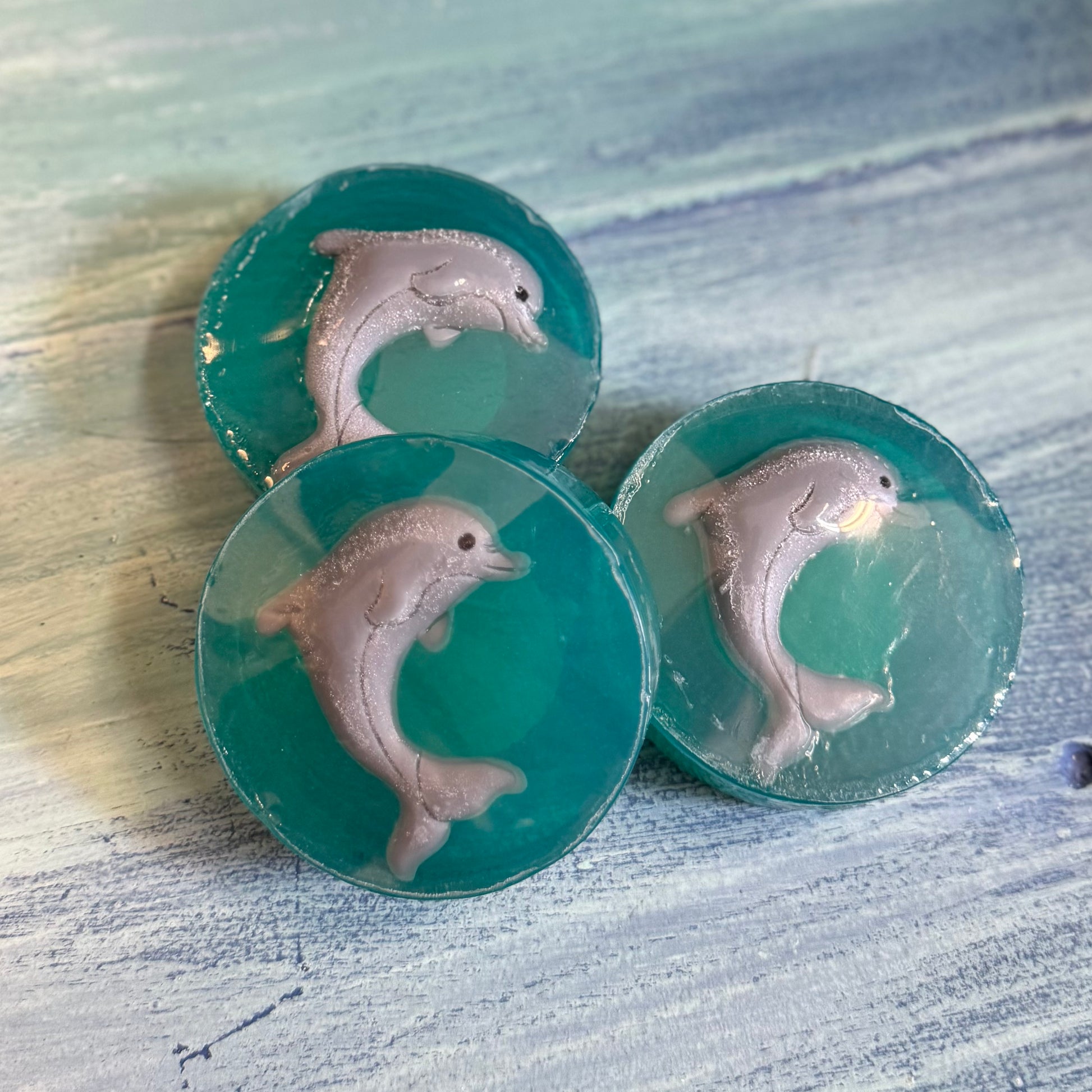Dive into a tropical escape with our Swimming Dolphins soap! These beautifully crafted olive oil soaps feature a refreshing Island Citrus fragrance that captures the essence of a breezy seaside paradise. Gentle on the skin and bursting with uplifting citrus notes, they’re the perfect way to bring a little bit of the island to your daily routine.