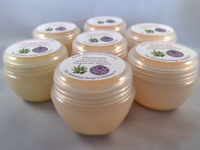 Made in paradise and we've brought them straight to you! Our Kauai Island Solid Perfume Pots are pure, simple, and as beautifully fragrant as it gets! Made with Kauai beeswax, coconut oil, essential oils, and vitamin E, they provide the most natural Hawaiian fragrances possible. Simply open the BPA free, recyclable, 1-ounce pot and smooth the Vitamin E-enriched solid perfume from your pot to your wrists, neck, and any spot that needs a touch of moisture and deliciousness, like your elbows, feet, or knuckles. You won't believe how gorgeous these natural, Hawaiian fragrances are!