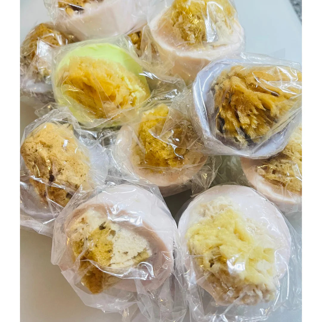 These "Natural Sea Sponge Soaps" made with real, Gulf-of-Mexico soft sea sponges and large bars of handmade soap, each created with olive oil and goats milk. The super soft sponges are part or "married" to the soap and make a whole body, built-in wash cloth! They provide a thick, creamy, and bubbly lather, leaving you with a perfect clean and hydrated skin. Long after you are finished using your bar of olive oil and goats milk soap, your sponge will go on to be used time and time again. We hope you'll try every fragrance we offer.